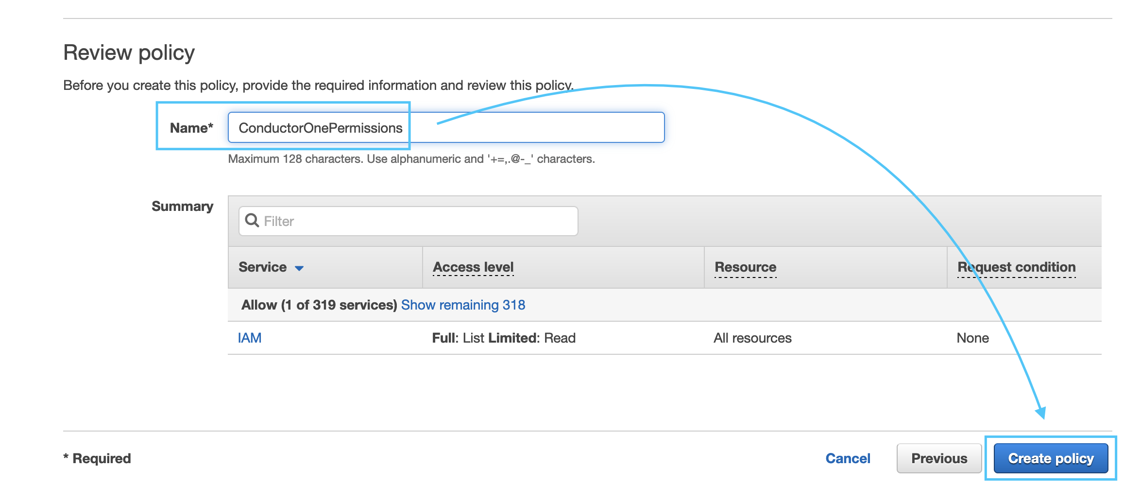 - iam:ListRoles: Allows ConductorOne to retrieve a list of all IAM roles.