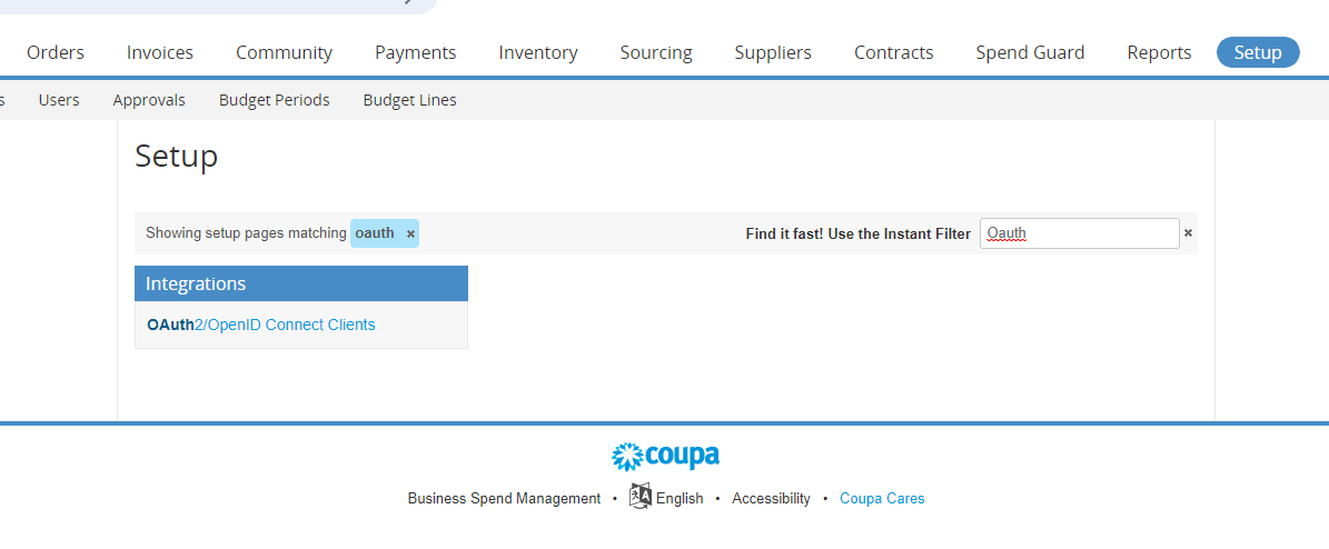 Configuring the connector requires you to pass in credentials generated in Coupa. Gather these credentials before you move on.Locate your Coupa domain